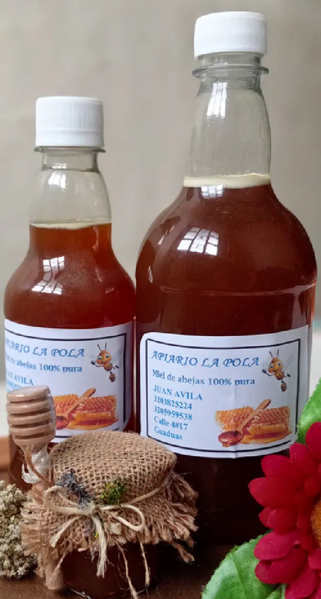 Miel 100% pura, recolectada en las montañas de Guaduas, Cundinamarca. Su sabor auténtico y alto contenido de nutrientes la convierten en un producto natural y artesanal de excelente calidad, ideal para cuidar la salud y endulzar de forma natural.